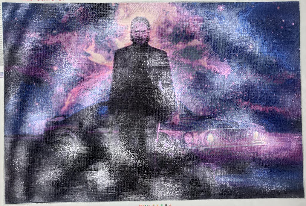 Je viens de finir mon tableau de perles ( John Wick ), je trouve que certaines parties du tableau son assez sombre et quelques éléments on a du mal a les distingués ( le chien, une partie du personnage ).