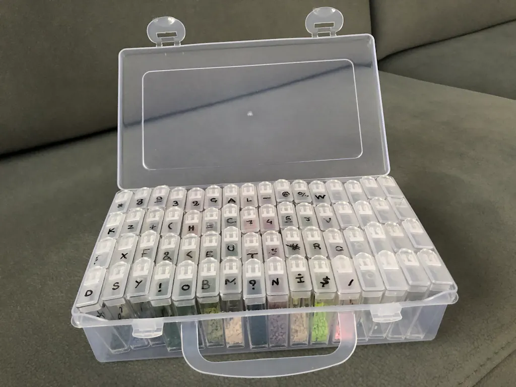 Versez votre diamants de couleur dans le plateau. Jetez un œil au patch de toile que vous venez d'exposer. Choisissez un diamant pour commencer et notez le numéro qui s'y trouve. Regardez le numéro sur le tableau, puis trouvez le sac de diamants avec le même numéro. Ouvrez le sac et versez une partie sur le plateau fourni avec le kit. Certains kits sont livrés avec plusieurs plateaux. Vous pouvez utiliser les autres bacs pour les autres couleurs de cette section.