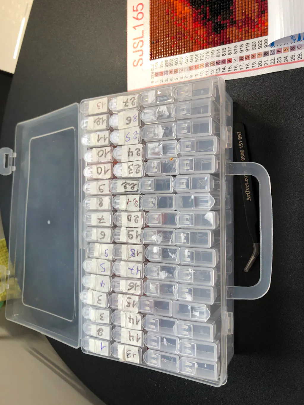 acryliques de différentes couleurs. Les utilisateurs n'ont qu’à coller ces diamants dans les carrés ou les cercles correspondants selon les codes sur la toile, et une œuvre d'art brillante est produite.
